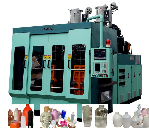 This style is man-machine interface,easy to operate.Double station and single station,from single mould head to sixmould head, single layer to six layers, mutli layer with view stripeline.Lt can match in-mold labeling, auto-deflashing device,crusher recycle system. The daliy output(24 hours) can reachapproximately from 12,000 to 86,000;it can produce from 0.1-5L plastic hollow products.